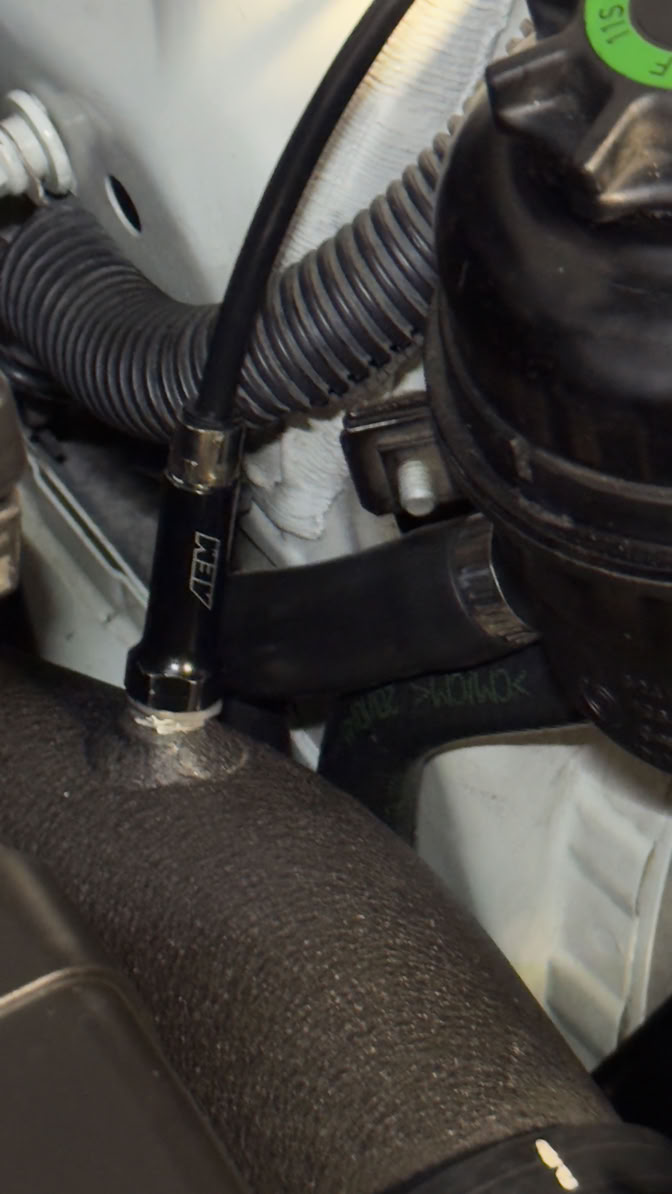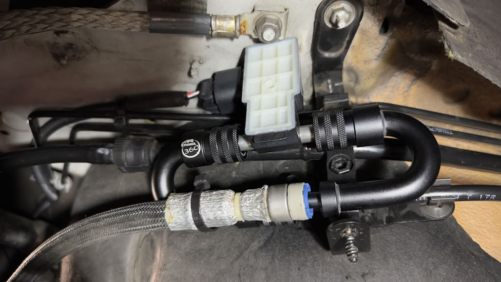 Para llevar la gestión de combustible al máximo nivel, instalamos un sensor Flex Fuel de alta precisión. Este componente detecta en tiempo real el porcentaje exacto de etanol en el combustible, enviando la información directamente al indicador digital y a la DME.