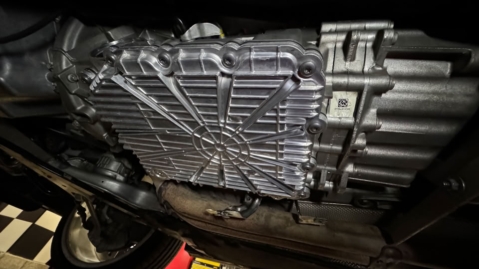 La transmisión DKG de 7 marchas también recibió una atención especial. Realizamos un servicio integral que incluyó el reemplazo de los filtros de aceite y una mejora estructural clave: sustituimos el cárter original de plástico por uno de aluminio. Esta modificación no solo elimina el riesgo de deformaciones y fugas por temperatura, sino que mejora la disipación de calor en la caja, asegurando pasos de marcha precisos y una mayor vida útil del sistema.