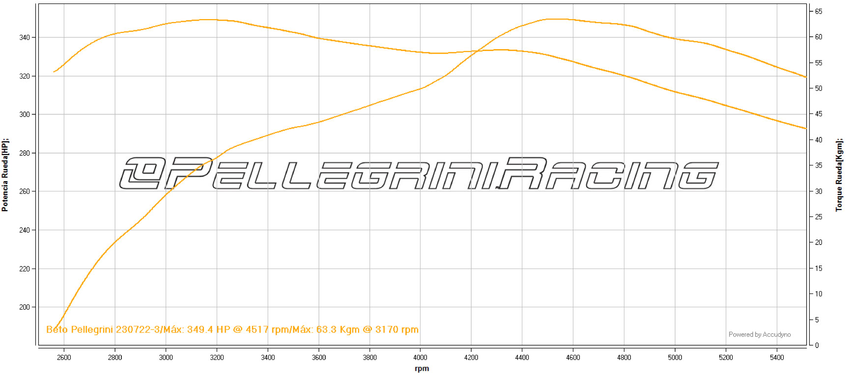 Casi 350WHP y 63Kgm a la rueda.