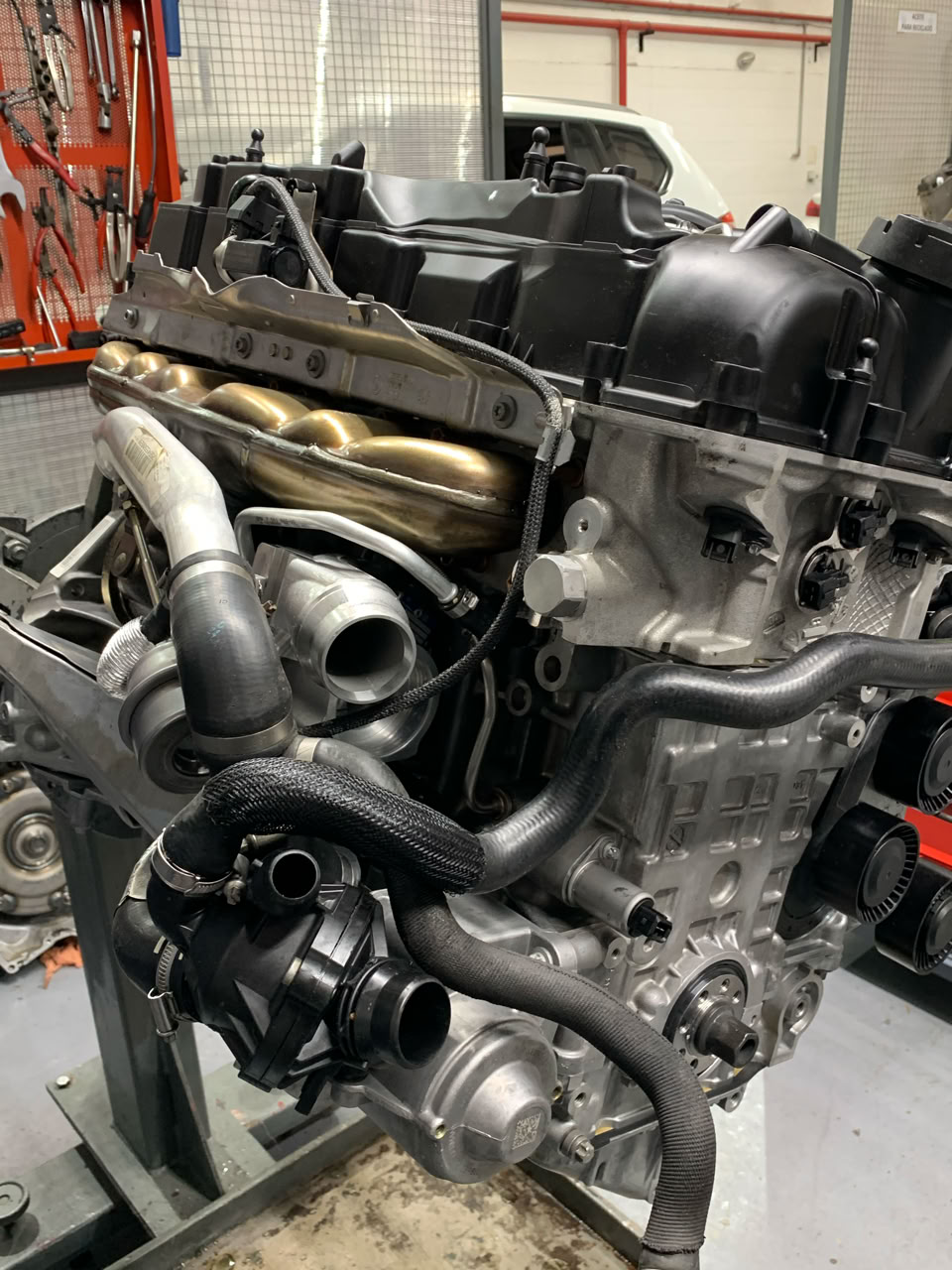 No todo fue sencillo: un problema en la punta del cigüeñal nos obligó a replantear el proyecto. En lugar de una solución rápida, optamos por la excelencia y realizamos un mantenimiento preventivo integral. Se modificó y alineó la punta del cigüeñal, se pulieron los muñones y se controló el balanceo con la precisión de Rectificadora D’elia. Aprovechamos para renovar componentes críticos como cojinetes, juntas y tornillería, además de reacondicionar el turbo original. El armado final estuvo en manos expertas: Emiliano Testa (ex Bell Motors) y Martin Daniello(actual Jefe de Mecanicos de Bell Motors) , garantizando que el corazón del N55 quedara en estado impecable